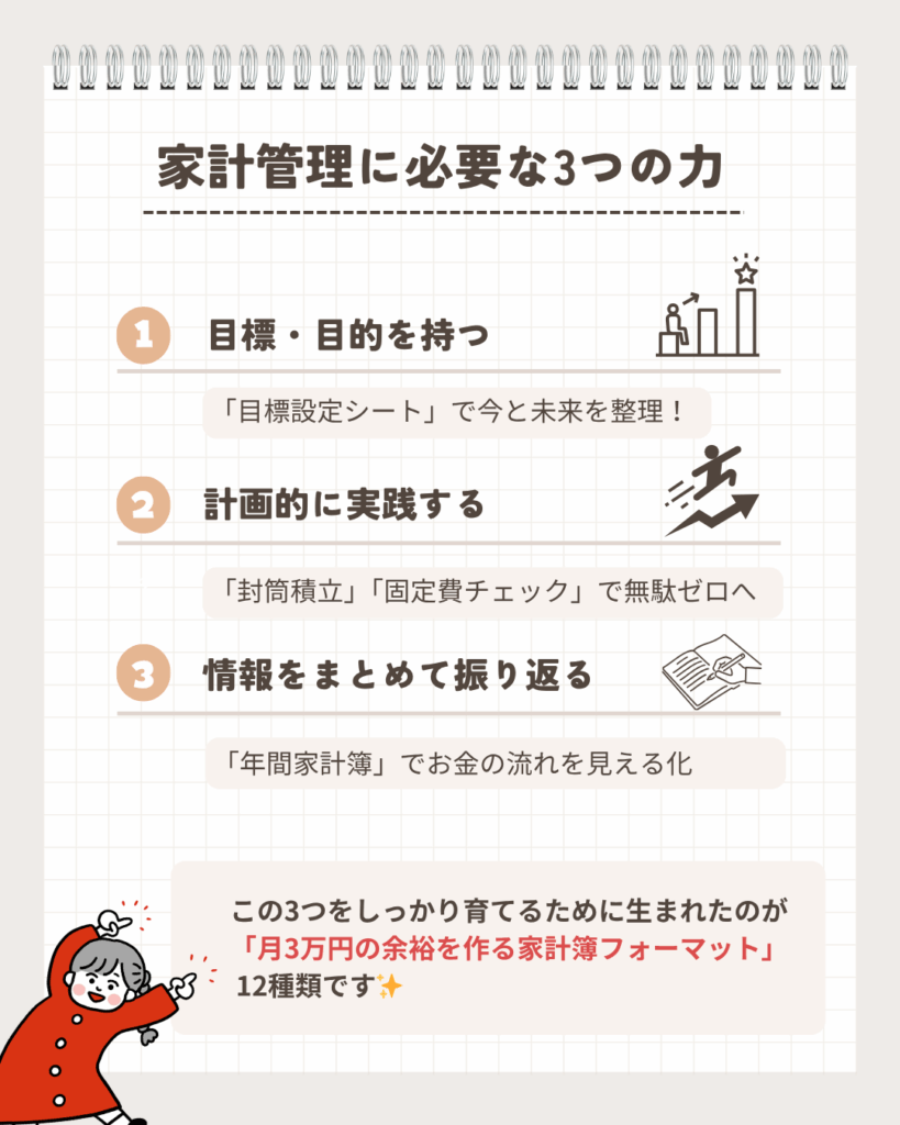 そして、この3つの力を無理なく育てられるように作ったのが、私の自作家計簿👇