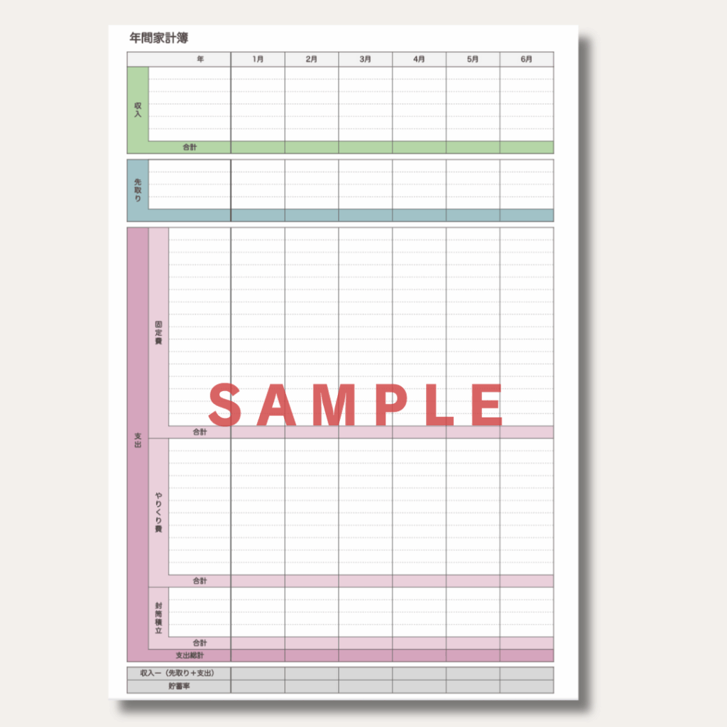 「年間家計簿」を使えば、月ごとの推移を比較できるから振り返りが進むよ👍